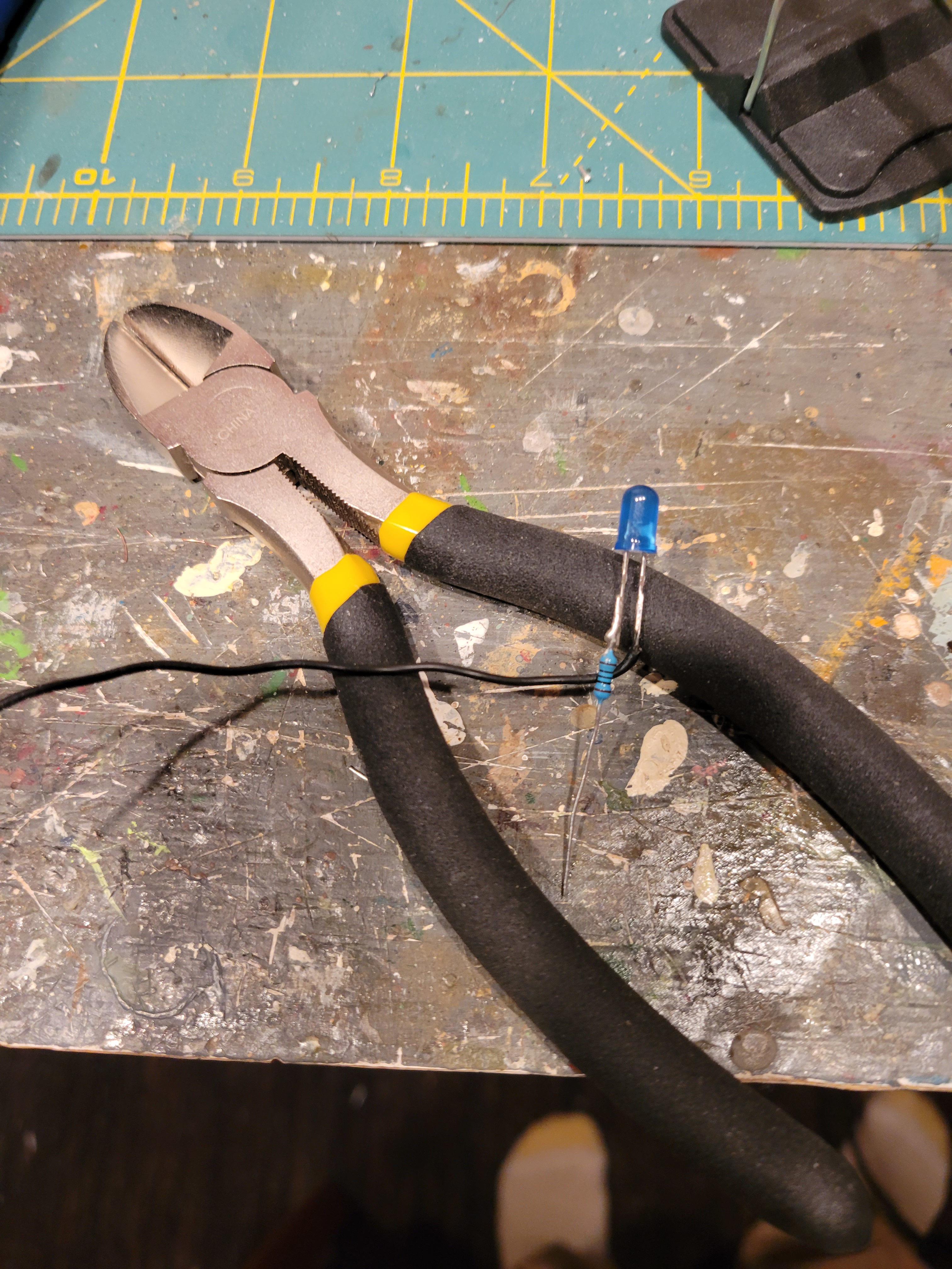 The front top shell assembly needs modified to swich from an old 5v lamp "cannon" to a 2 Blue Led, 1 white led "cannon" fire system. Compared to the other sections, the upper top will be the shell that gets the lest modification.